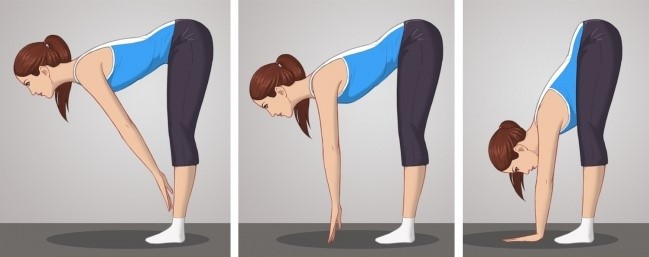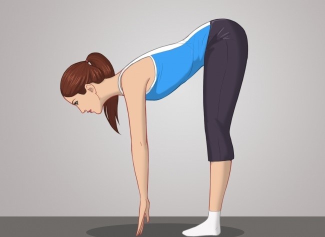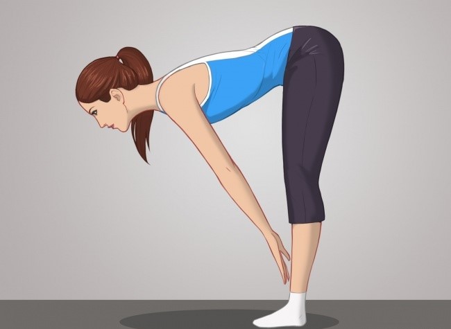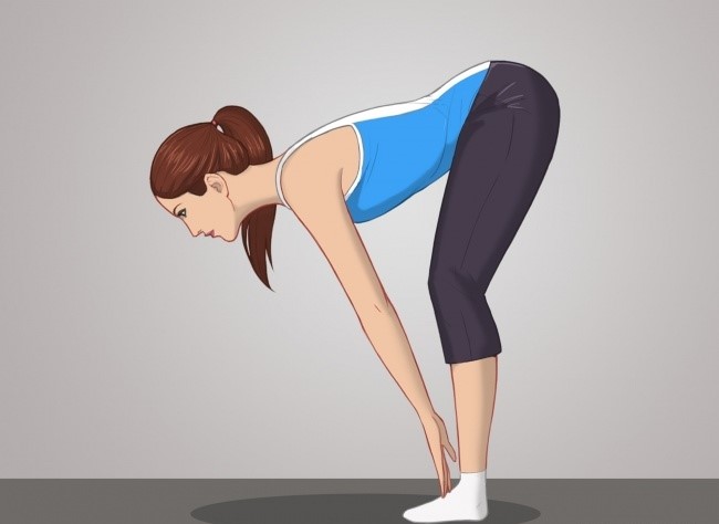Направете неколку вежби за загревање за да ги подготвите вашите мускули. Потоа наведнете се нанапред и обидете се да го допрете подот со дланките. Нозете и грбот држете ги исправени. Запомнете до каде стигнале вашите дланки, а потоа исправете се.