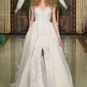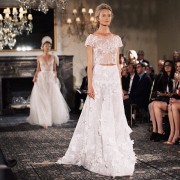 Оваа година на невестинската модна недела во Њујорк доминираа цветните детали, започнувајќи од огромни и диви букети, па сè до цветни дизајни на венчаниците. Исто така можеа да се забележат и дводелни модели, кои се самите по себе уникатни, како и интересни црни акценти. Сите модели се едноставни, со моќни детали, па токму тоа е она што ги издвојува новите колекции. Доколку планирате да правите свадба во текот на годинава, тогаш со сигурност овие фотографии ќе ве инспирираат за дизајнирање на вашата совршена венчаница…