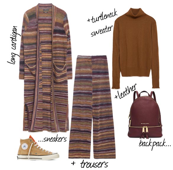Плетените нешта се одлични за мрзливите денови, но ако додадете вистински модни додатоци, овој едноставен изглед може веднаш да се трансформира во таков кој е совршен за во канцеларија, но и за вечерно излегување.