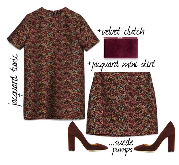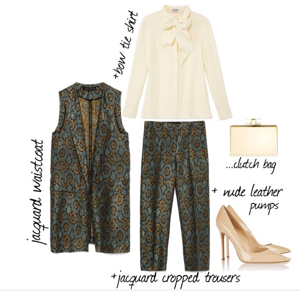 Сетовите направени од материјали како свила, сатен, брокат и жакард се одлични за посебните прилики и вечерните излегувања. Бидејќи овој изглед сам по себе остава впечаток, обидете се остатокот од изгледот да биде едноставен, со суптилни детали и бои. Ништо не смее да се натпреварува со сјајот на сетот. Кога одбирате обувки и чанта, одберете неутрални бои како црна или беж.