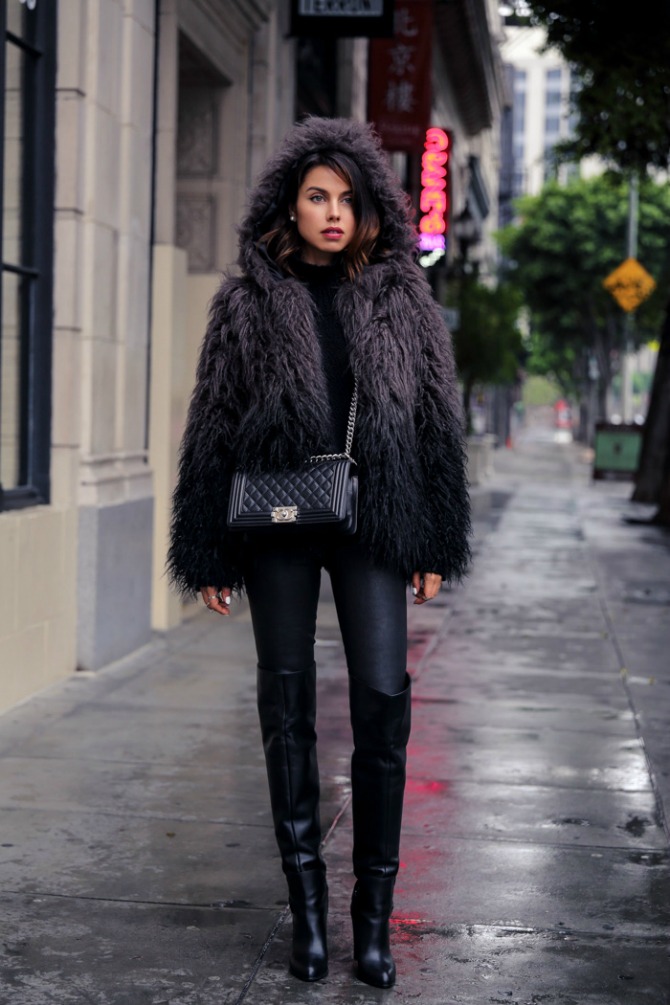 9. Ако сакате ефективна и модерна зимска дневна комбинација, задолжително испробајте ја „рок“ варијантата. Рецептот е лесен: сите парчиња нека бидат во црна боја, кожни, со малку крзно, и накит со сребрени детали и нитни. Можете да се нашминкате потемно и појако од обично, па слободно експериментирајте. Ефектот ќе биде одличен!