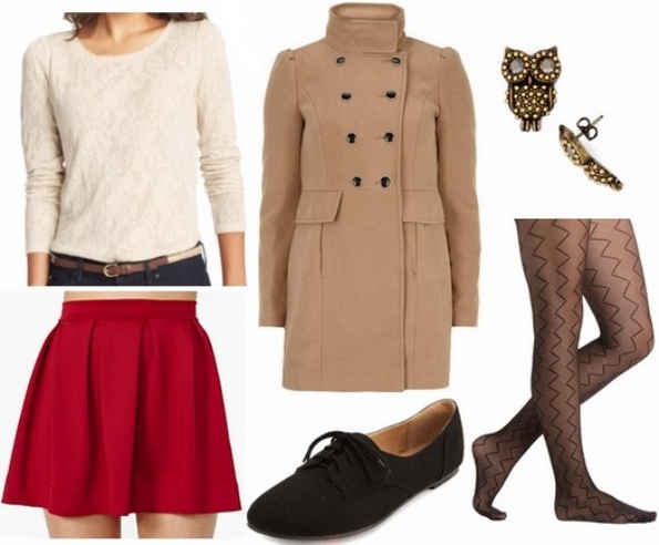 Ваквата комбинација дефинитивно покажува дека зимата не е монотона и здодевна. Ниските температури не треба да ве спречат да изгледате женствено и софистицирано. Капут со песочно-кафеава боја е добра инвестиција, бидејќи оди во повеќе комбинации и тешко дека ќе излезе од мода за брзо време. Комбинирајте го со женствено пласирано здолниште, бел и удобен џемпер, ниски обувки и дизајнирани хулахопки.