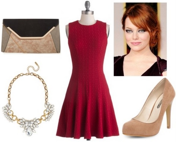 Секако, празничната сезона вклучува многу прослави и забави. Доколку изберете поформална варијанта бидете софистицирани. Едноставен, еднобоен фустан во впечатлива црвена боја привлекува внимание и ги нагласува вашите облини без да изгледа дека премногу сте се труделе околу својот изглед. Во комбинација со фустанот одберете едноставни кремасти потпетици, косата врзете ја во ниска пунџа која секогаш придонесува за женственост, а што се однесува на накитот, одберете нешто повпечатливо.