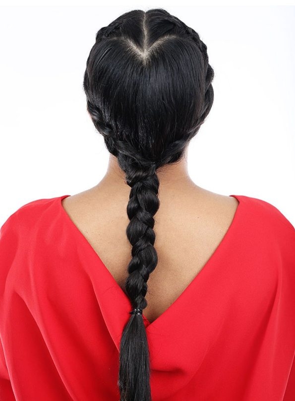 Кога ќе продолжите со плетење после увото, земајте прамени од внатрешниот дел од косата од соодветната страна. Штом ќе стигнете до средина на вратот, заврзете ја плетенката со ластиче. Повторете ја истата постапка од другата страна на главата.