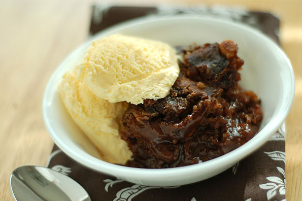 - Печете околу 30-35 минути додека површината на тортата не почне да изгледа како да е сува. Оставете да се излади десетина минути, а потоа е спремна за сервирање. Можете да ја послужите со сладолед.