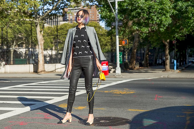 4. Кожните пантолони и оваа сезона не излегуваат од мода. Во моментов најпопуларниот модел на чевли, блуза и сако се секогаш добар избор кога не сте сигурни што да облечете за на работа. Интересно е да ставите чанта која е доста впечатлива и која ќе ја „отвори“ целата комбинација. За вашите работни прилики ќе ви биде потребна малку поголема чанта, па внимавајте на ова додека го избирате новиот модел.