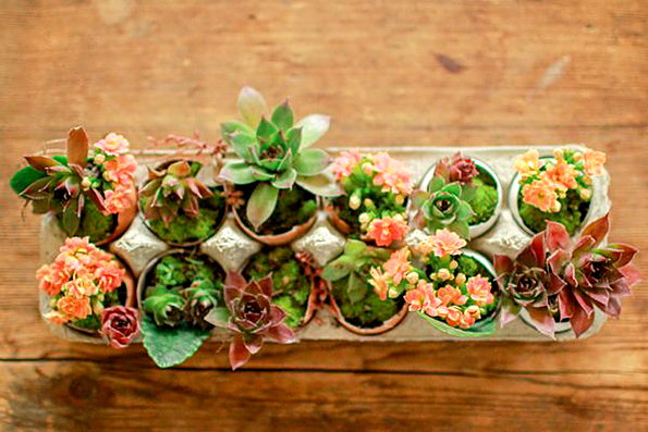 Искористете ги лушпите од јајцата, гајбата за јајца, малку земја и неколку цвеќиња за да направите совршен подарок или интересен букет за централното место на масата.