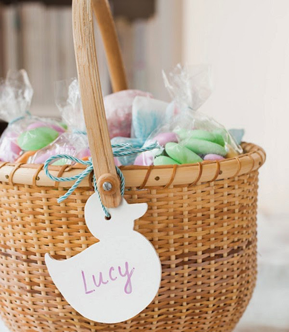 На кошницата со јајца која ја подготвувате за некого, прикачете дрвено парче во форма на патка, зајче или јајце и напишете го името на оној за кого е наменета.
