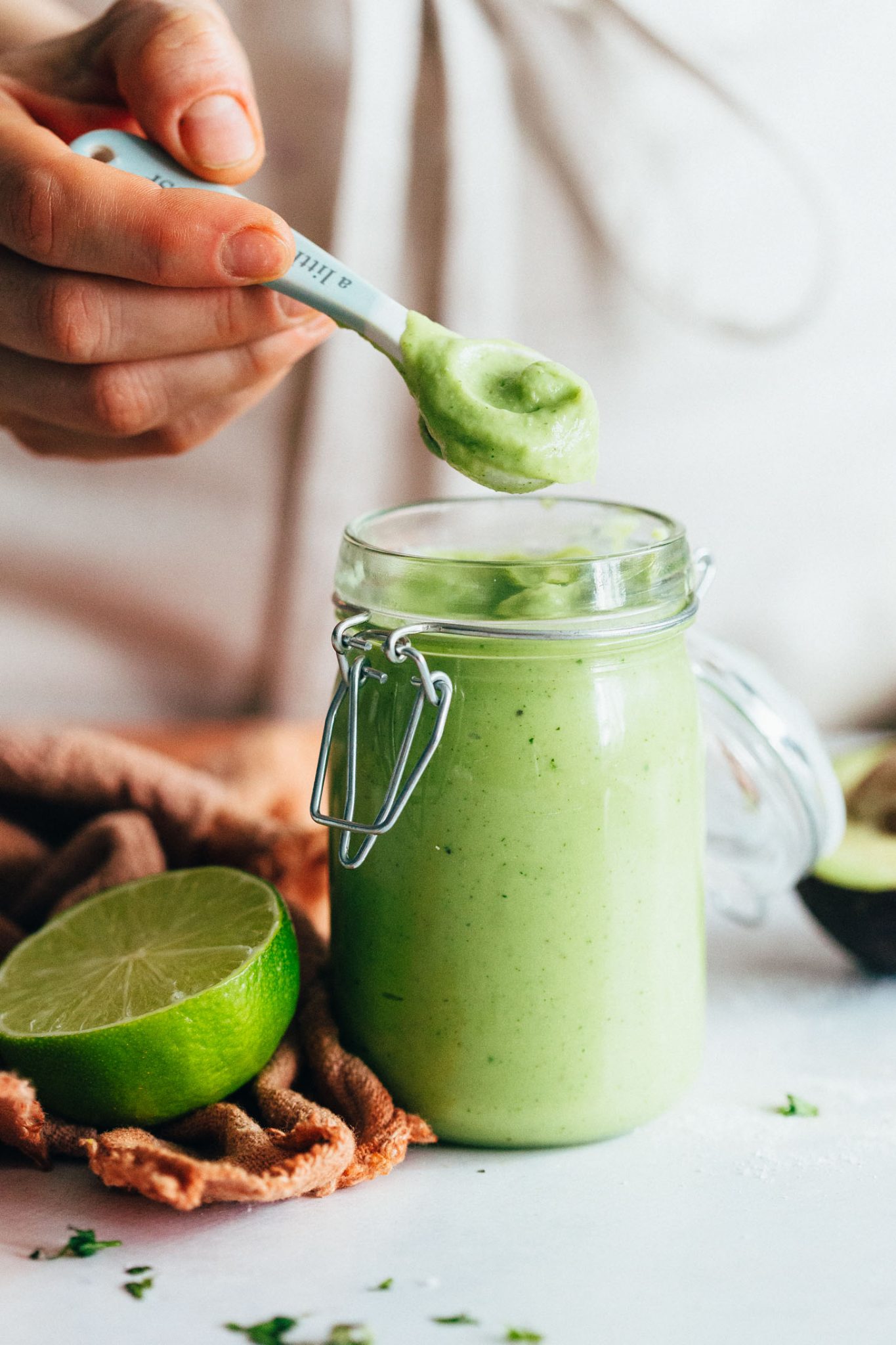 - Блендирајте додека не се комбинираат. Потоа, вкусете ја смесата и прилагодете го вкусот по потреба, додавајќи повеќе лимон за киселост, сол по вкус или повеќе зачини.