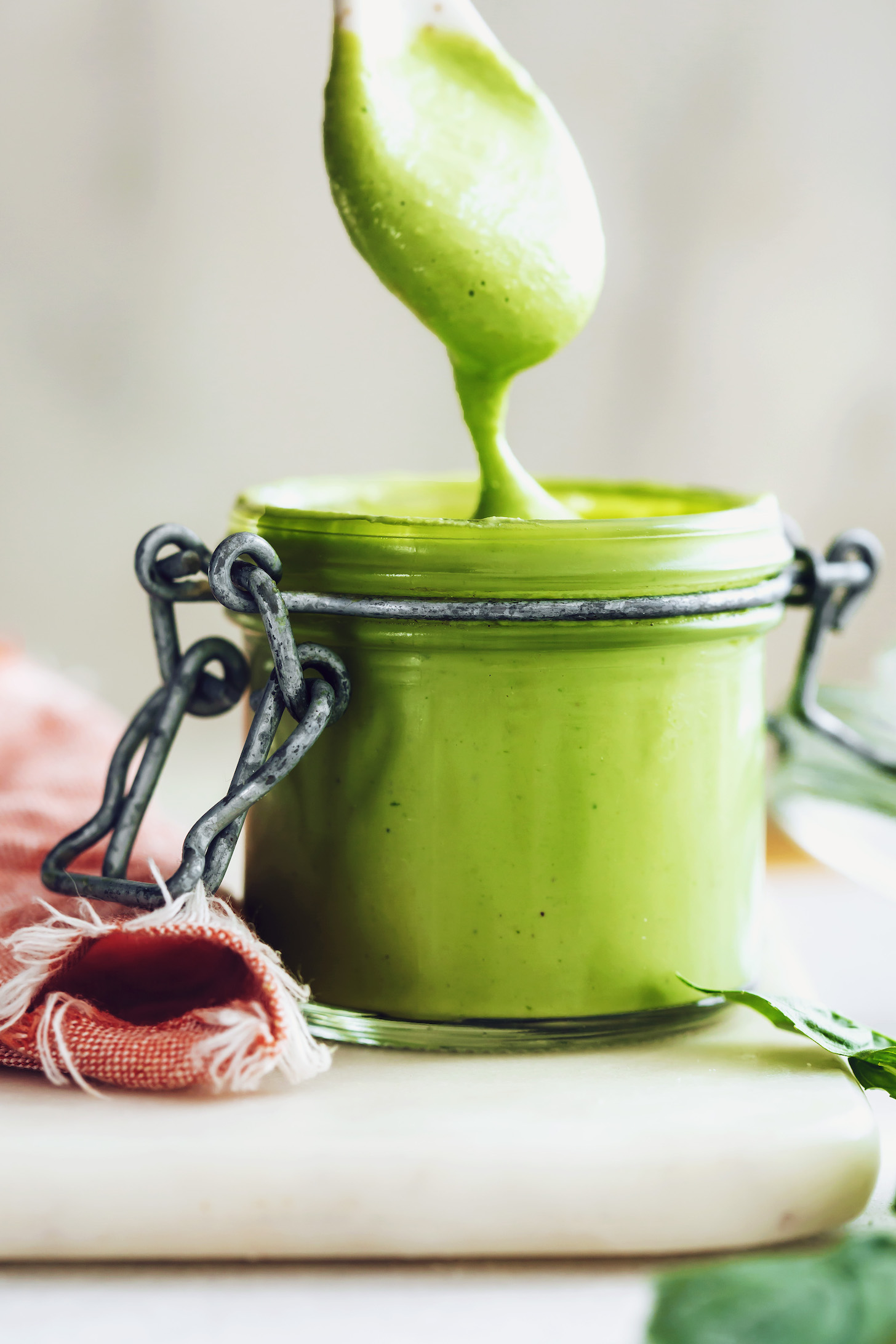 Зелена магија во вашата салата, врз зеленчук и многу повеќе! Овој вкусен сос е лесен за подготовка и е одличен за вегани.