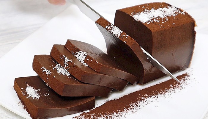 5. Кога ќе се олади, извадете го десертот од пакувањето и посипете со какао или кокосово брашно. На здравје!