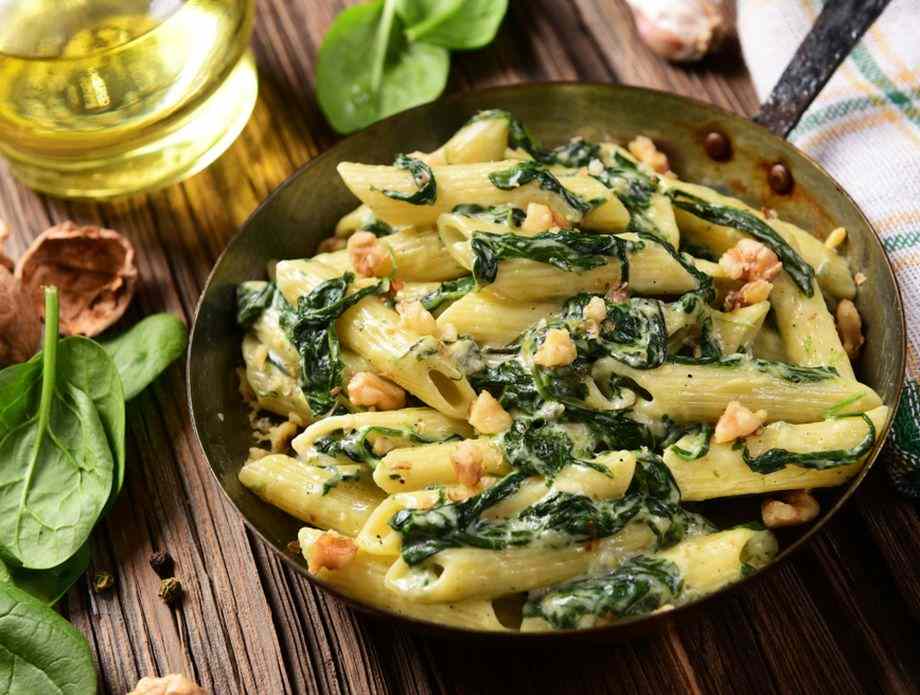 Рецепт за вкусни тестенини со сос од сирење и спанаќ