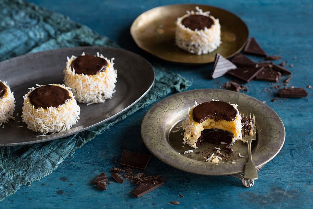 Ставете вода во тенџере на оган и ставете стаклен сад над пареата. Почекајте водата да зоврие, а потоа малку намалете ја топлината. Додадете го чоколадото за готвење и една лажичка масло во него и почекајте да се растопи. Откако ќе добиете топено чоколадо ставете го настрана 2 до 3 минути да се олади малку. Земете лажичка и намачкајте еден дел од круговите со фил, а потоа поклопете со преостанатите кругови. Истркалајте ги колачите во кокос, па прелијте ги со растопеното чоколадо. Ставете ги колачињата во фрижидер на 1 час по што тие се подготвени за сервирање.