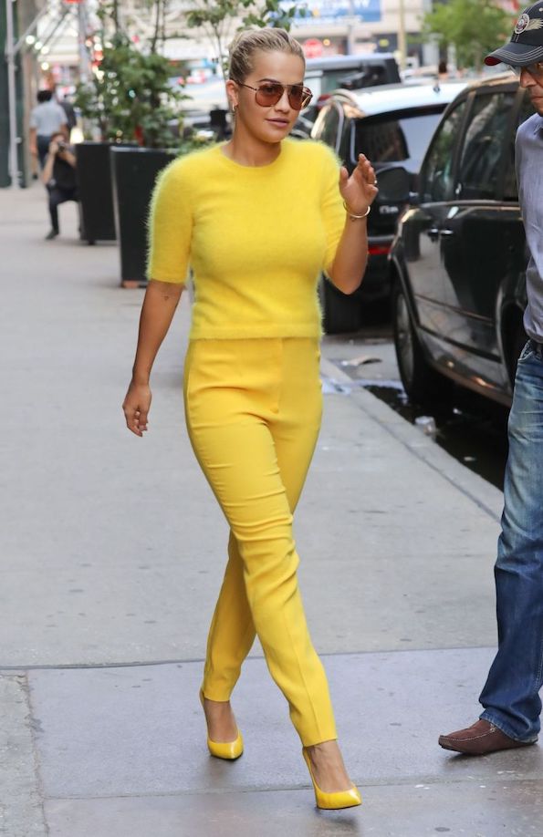 Сепак, дизајнерите отидоа чекор понатаму и ни препорачаа да носиме жолто од глава до пети. Во облик на комбинезони, фустани, комбинации на панталони и сакоа… За што и да се определите, нема да згрешите.