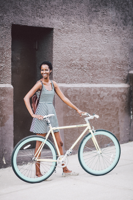 Фустан во А-линија, рамни обувки и ранец – одлични за топлите летни денови