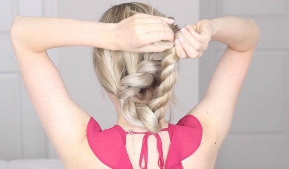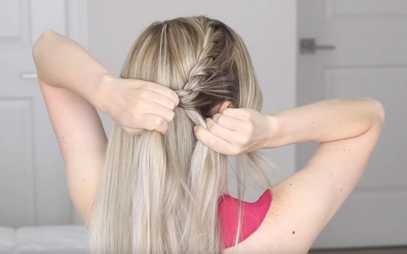 Добро затегнете ја плетенката во пределот зад ушите. Исплетете ја косата до вратот, па заврзете ја со ластиче.