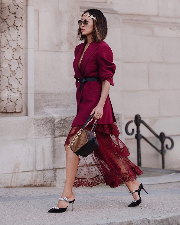 Дури и врз најобичниот фустан, еднобојното сатенско сако може да придонесе за соодветен формален изглед. Исто така, можете да бидете сигурни дека ако стане постудено, вие нема да треба да се грижите, така што оваа комбинација има двоен ефект – и естетски и функционален.