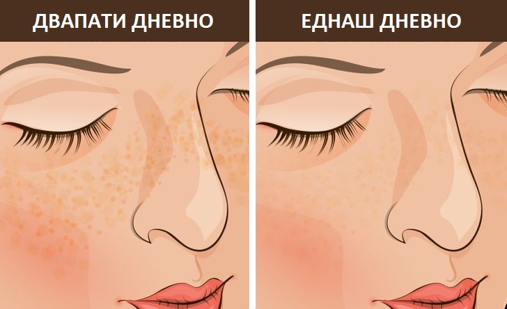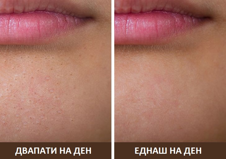 Иако е вистина дека чистењето на лицето ги елиминира нечистотиите и е суштински чекор во вашата рутина за нега на кожата, ако го правите тоа премногу често, вашата кожа ќе биде премногу сува. Кога наутро само ќе ја исплакнете кожата со вода, таа нема да ги изгуби потребните природни масла кои ја одржуваат здрава и хидрирана.