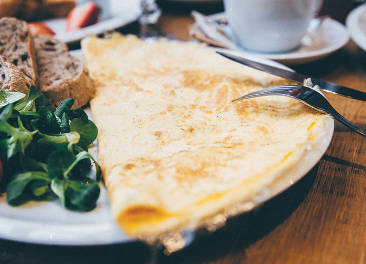 Никогаш нема да погрешите доколку изберете омлет со зеленчук. Нарачајте јајца со броколи, лути пиперчиња, кромид и свежи зачини. Исто така добар избор се и печени или варени компири со салата, а особено се препорачува слаткиот компир (батат). Така ќе останете сити и ќе имате доволно енергија да го продолжите работниот ден. Можете да изберете и тост, но без путер. Како дополнителен извор на витамини, нарачајте и свеж сок од грејпфрут, кој е особено здрав за метаболизмот и може да ви помогне во намалувањето на телесната тежина.