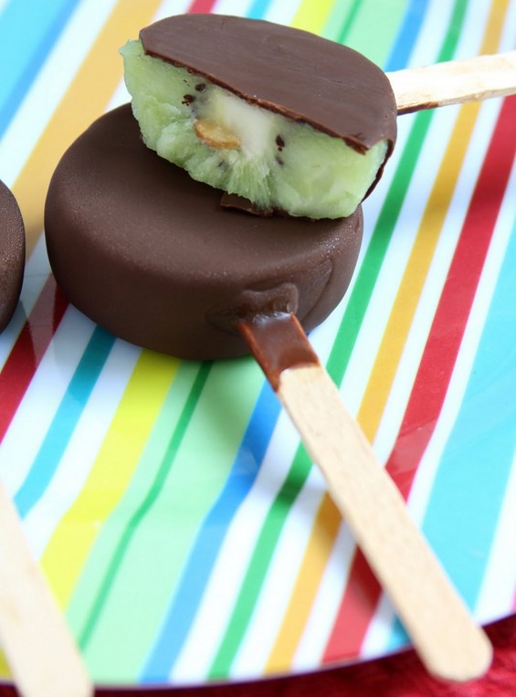 Смрзнати киви на стапче, обложени со чоколадо