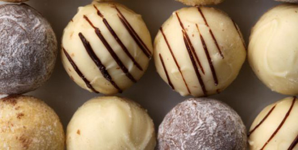 Оладените топчиња провалкајте ги во глазурата и повторно оставете ги во фрижидер за да се стегнат. Послужете ги во хартиени корпички.