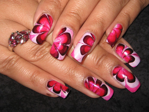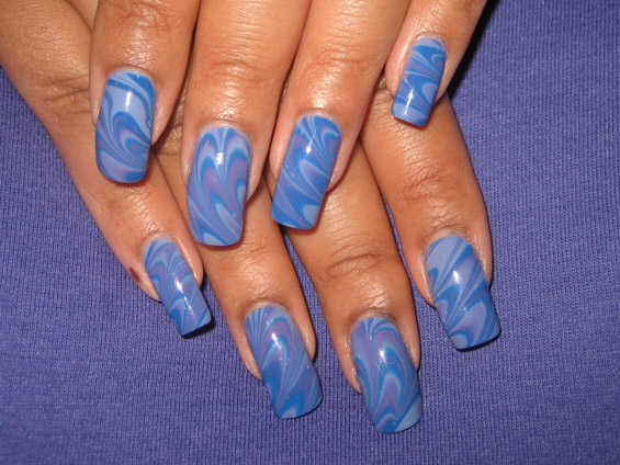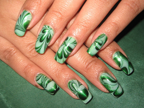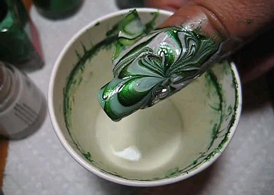 Откако ќе го завршите дизајнот, со вашиот нокт насочен кон делот кој најмногу ви се допаѓа спуштете го прстот во водата (како граница користете го крајот на сeлотејпот).