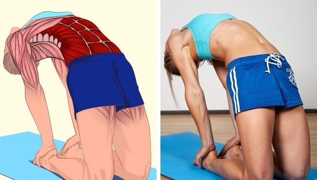 Изведба: Седнете на вашите пети, ставете ги дланките зад грб и туркајте ги колковите нагоре и напред.