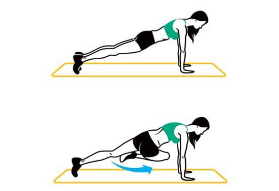 Почнете во положба за правење склекови. Телото мора да биде рамно од главата до петиците, а сите мускули затегнати. Внимавајте да го држите грбот рамен и мускулите на стомакот стегнати. Десното колено подигнете го спрема левото рамо и потоа вратете го во почетната положба. Потоа направете го истото со другата нога. Оваа вежба делува на градите, задниот дел од бутовите, колковите, долниот дел на грбот, торзото, стомачните мускули, рамената и горниот дел од грбот.