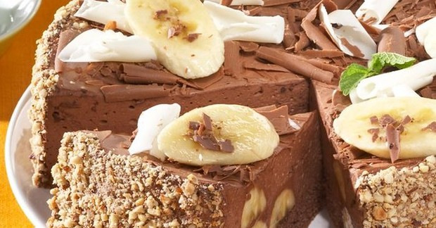 Ставете ги сите состојки во еден сад, а потоа матете со миксер сè додека не добиете мазна смеса. Поставете хартија за печење во четириаголен сад и потоа префрлете ја смесата таму. Израмнете ја, покријте ја и ставете ја во замрзнувач на околу половина час. Ако сакате, можете декоративно да додадете исечкани банани и на врвот на колачот. Добар апетит.