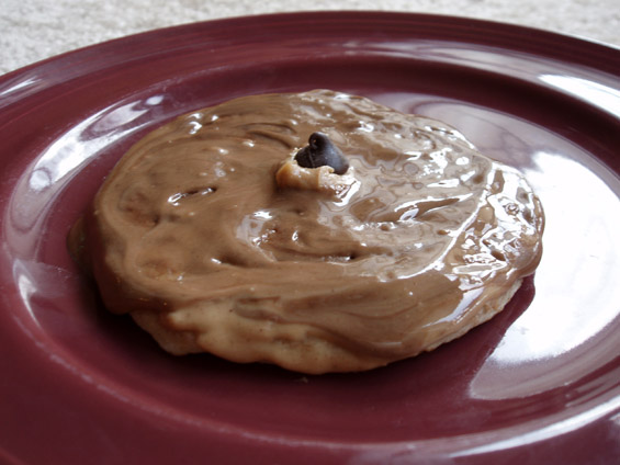 Оладените колачиња треба да се филуваат со цврст фил од путер од кикирики и на крајот да се декорираат со мармалад од јагоди во средината.