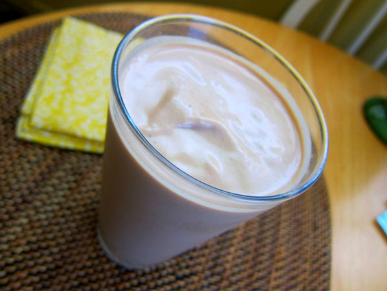 Во блендер измешајте ги бананата, млекото, путерот од кикирики и коцките мраз. Изблендирајте ги состојките додека не добиете изедначена густа течност. Послужете во високи чаши.
