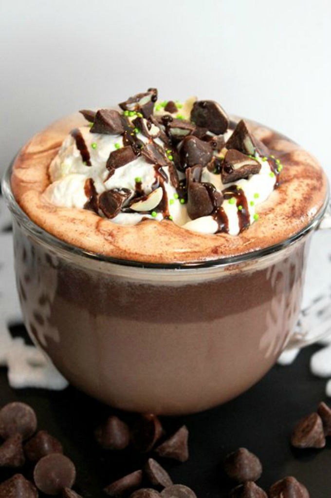 Измешајте чоколадни бонбони со топло млеко, направете од нив топло чоколадо, а потоа додадете малку нане. Верувајте ни, уживањето ќе биде целосно!