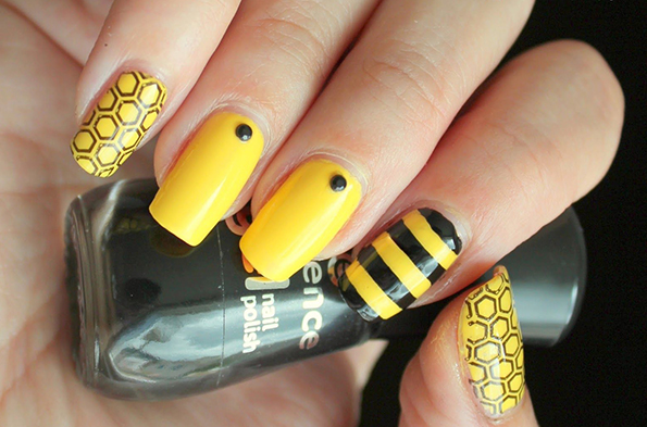 Доколку едноличниот маникир веќе ви е досаден, бидете креативни и направете еден „направи сам“ проект – на жолта основа со црн лак нацртајте сонце. Исто така, со црни и жолти едноставни линии можете да постигнете изглед на пчелка. Многу едноставно, а многу интересно.